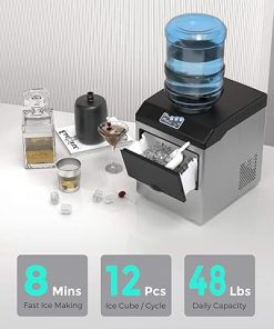 - 【48lbs Ice Per Day】This 5 gallon ice maker can makes up to 48 pounds of fresh ice per day. It makes 12 bullet ice cubes in an average of 8-10 minutes.