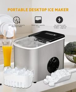 - INSTANT ICE REFRESHMENT: The countertop ice maker makes small ice in 3.5 minutes and large ice in 5 minutes, producing 9 cubes per cycle for quick, refreshing beverages