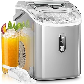 - Unrivaled Chewable Ice:The nugget ice cubes are crystal clear, easy to chew, and melt slowly to preserve the original flavor of whiskey and cold beverages, allowing you to munch on the flavored ice cubes after you finish your drink.Meanwhile,our chewable ice maker have a clear window allows you to watch the fascinating ice cubes being produced without having to open it