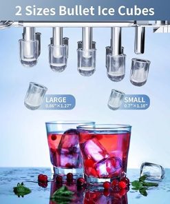- 2 SIZES ICE CUBES: This countertop ice maker provides you the best quality ice cubes. It has small or large size of bullet-shaped ice cubes to choose, to meet all your different needs. Let you enjoy the cool and fresh ice cubes on a hot summer day.