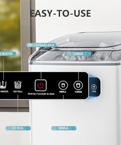 - EASY OPERATION :This ice maker only takes four steps,1.open cover and move baskt 2. pour water ,do not exceed the “MAX” water mark 3.Press the on/off button 4.press small/large button to choose ice size