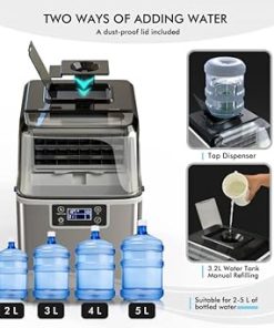 - [2 Ways to Add Water – Bottle Not Included]: The ice maker supports two ways of adding water: manual or bottled water supply. The countertop ice maker machine holds up to 3.2 liters of water, reducing the need for frequent manual refills. Suitable for 0.5-3 Gal (2-11L) bottled water commonly found in supermarkets.