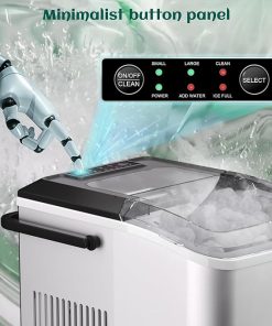 - 🍨 [USER FRIENDLY] This portable ice maker is user-friendly and easy to operate. Simply add water, press “SELECT” for ice size, press the “ON/OFF” button, and the first batch of ice will be ready in 7-8 minutes. When the water shortage indicator light is on, it indicates that there is a shortage of water in the inner chamber, reminding you to add water in time. When the ice full indicator light is on, it indicates that the ice basket is full of ice cubes, reminding you to take out the ice cubes in time.