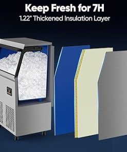 - 100LBS/24H High Efficiency: This commercial ice maker machine produces 100 pounds of clear ice cubes per day and is equipped with a thickened ice bin with 34 pounds storage capacity, it can reduce the melting rate of ice cubes during the 5-7 hours of storage, and minimize loss from melting ice, easily meet your daily ice needs.