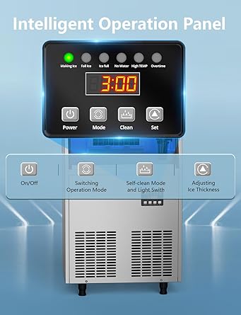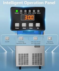 - Intelligent LCD Control Panel: The ice maker is equipped with a multi-function control panel that displays the ambient temperature and can adjust the ice cube size by changing the ice making time.It built-in diagnostic system can intuitively display problems on the LCD digital control panel, and refer to the user manual for quick troubleshooting.