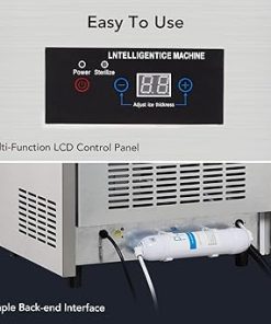 - Easy Operation & Button Control – This ice maker is equipped with an led panel to display the thickness of the ice. Press the start button to get started, and the simple button allows you to adjust the ice thickness and size as needed: you have 6 sizes of ice to control for different applications, and the ice making time increases by 2 minutes for each upward adjustment.