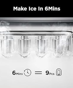 - Fast Ice Maker: The ice maker only takes 6 minutes to make 9 bullet-shaped ice cubes. Fill 1L of water into the water tank, maximum ice capacity can reach 26 pounds in 24 hours.