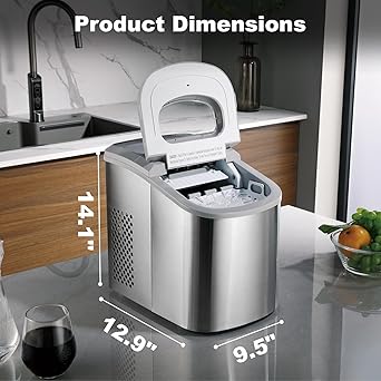 - Portable & Compact – The mini ice machine measures 9.5 x 12.9 x 14.1 inches. it’s perfect for various occasions such as parties, kitchens, offices, camping trips, RV, motorhomes or bars without taking up too much space on your counter top! The best New Year gift!