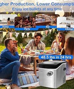 - 【Ultra Efficient & Quieter】Our portable ice maker adopts see-through window visualized design, allowing direct viewing of the interior. Equipped with a upgraded powerful compressor to complete the ice making fairly quickly but at less than 46dB normal noise, giving a comfortable and quiet environment to enjoy ice-making, no worry the noise annoying your family or your friends.