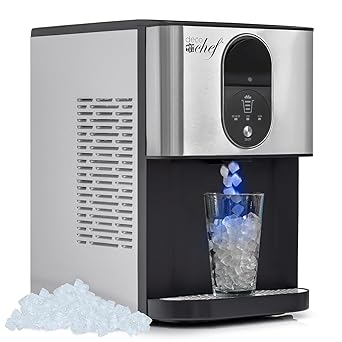 - SLEEK AND STYLISH – Designed to fit seamlessly into your lifestyle, the Deco Chef Nugget Ice Maker boasts a stylish stainless steel body that complements any kitchen decor. Its compact countertop size is ideal for small kitchens, apartments, dorm rooms, and offices. Say goodbye to bulky ice machines and hello to a space-saving solution that doesn’t compromise performance.