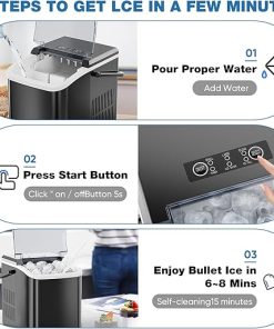 - USER-FRIENDLY & QUIET OPERATION: Enjoy ice-making with ease, thanks to the simple control panel. Just add water, press a button, and get fresh ice in minutes. Indicator lights alert you when the water is low or the ice basket is full, ensuring smooth operation. Plus, with noise levels under 40dB—quieter than a refrigerator—it’s perfect for any setting without causing a disturbance.