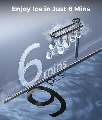 - Quick Ice in 6 Minutes: Enjoy 9 fresh ice cubes in only 6 minutes, with a daily output of up to 26 lbs. Ideal for spontaneous gatherings, refreshing drinks, or keeping cool all day long