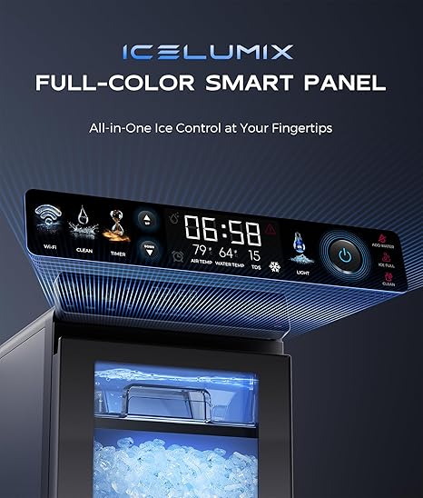 - 𝐄𝐱𝐜𝐥𝐮𝐬𝐢𝐯𝐞 𝐈𝐜𝐞𝐋𝐮𝐦𝐢𝐱 𝐅𝐮𝐥𝐥-𝐂𝐨𝐥𝐨𝐫 𝐒𝐦𝐚𝐫𝐭 𝐏𝐚𝐧𝐞𝐥: Tap into ice-making with the industry-first IceLumix Full-Color Smart Panel. Vibrant icons, real-time TDS and temperature display, and intuitive controls make ice-making smarter, clearer, and easier than ever