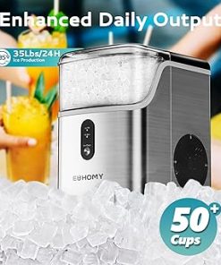 - Fast & Endless Ice Supply: Euhomy nugget ice maker machine produces soft chewable ice in just 7-10 mins , our countertop ice maker machine filled with a 1.1L water tank, you’ll get about 35 pounds of pebble ice within 24 hours, ensuring a steady supply of fresh nugget ice for your household or party, No need to the store for ice anymore!