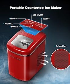 - COMPACT WITH FUN DESIGN – Compact size and fun, retro red look will accentuate any kitchen countertop -Ice maker measures 8.86″ W x 12.32″ L x 13.15″ H, 2.1 L capacity