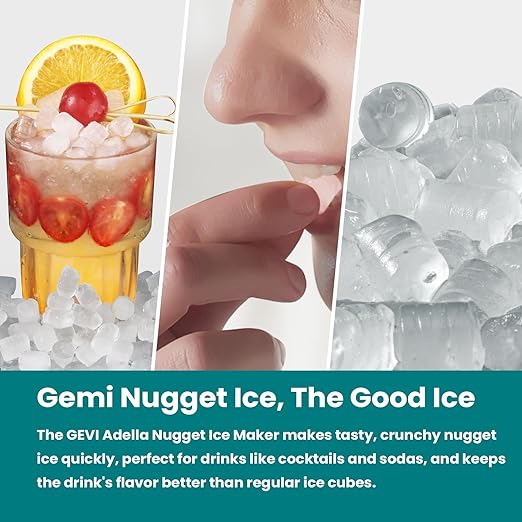 - 𝐂𝐡𝐞𝐰𝐚𝐛𝐥𝐞 𝐈𝐜𝐞 𝐌𝐚𝐤𝐞𝐫 – Gemi Nugget Ice, also known as Pellet ice or Chewblet ice is made not only to cool down drinks but also to retain their flavor and provide chewable joy.