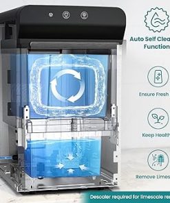 - 【Smart Design & Self-Cleaning】The countertop ice maker has an ice full infrared sensor. It will light up when the ice basket is full and then the ice maker will pause making ice automatically. The advance cleaning system regularly descales the machine, keeping your ice tasting fresh and ensuring it runs smoothly.