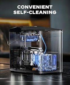 - Effortless Self-Cleaning: This portable ice machine features a convenient self-cleaning mode that guarantees fresh, clean ice every time. Its user-friendly control panel, complete with LED indicators, makes operation simple by alerting you when the ice basket is full and when it’s time to refill the water