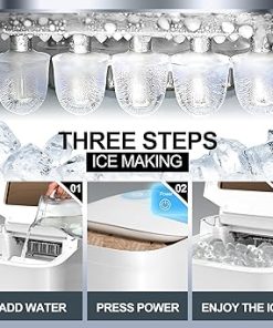 - 【Stylish and Durable Design】 Crafted from high-quality plastics and stainless steel in an elegant white finish, our white ice maker machine not only adds a a sleek aesthetic to your kitchen or office space, but also provides durability and stability, making it a reliable appliance for daily use. Its compact countertop design makes it a convenient addition to any environment without occupying too much space