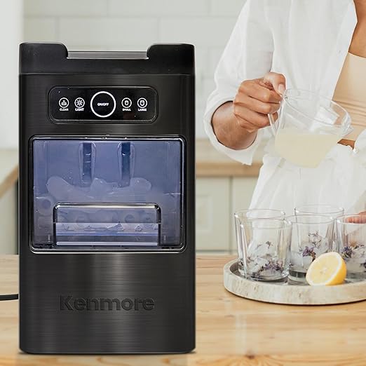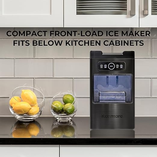 - SPACE-SAVING FRONT-LOAD DESIGN : Kenmore Ice Makers countertop With a slim profile and front-access water/ice drawer, this automatic ice maker can be used and stored below cabinets and takes up minimal space on your counter.