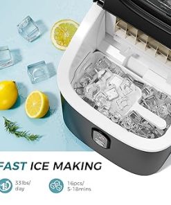 - 𝐅𝐚𝐬𝐭 𝐈𝐜𝐞 𝐌𝐚𝐤𝐢𝐧𝐠: The New Ice Cube Maker Countertop is incredibly efficient! It can produce 33 pounds of ice within 24 hours. Our countertop ice maker only takes 5-18 minutes to produce the first batch of ice cubes, ensuring continuous fast ice making. No more need to buy ice from the store!