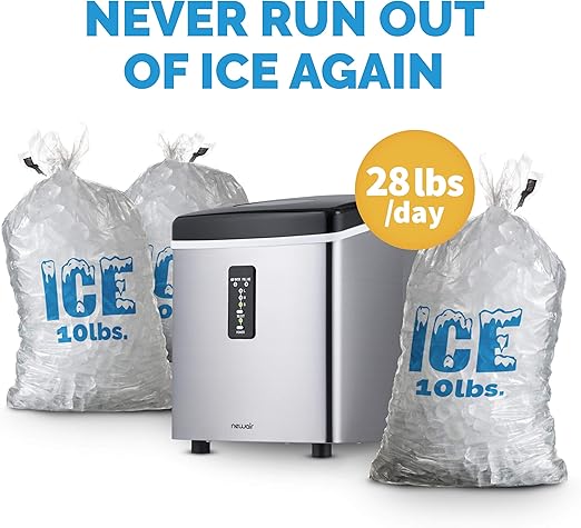 Ice maker store-Newair Countertop Ice Maker Machine 28 lbs. of Ice in 24 Hours- Portable Design in Stainless Steel with 3 Bullet Ice Cube Sizes