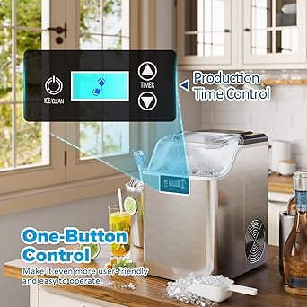 - 【TIMED and SELF-CLEANING FUNCTION】Our ice makers are equipped with a self-cleaning feature that allows for a thorough cleaning in just 15 minutes, making your maintenance routine much easier. The advanced cleaning system helps sanitize and descale with regular use, keeping ice fresh tasting and the machine performing at its best. In addition, the nugget ice maker has a timer function. You can also set the ice making time as needed, eliminating the hassle of waiting for ice cubes.