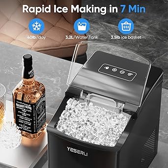 - ❄️【Fast & Continuous Ice Making】Equipped with the R134a upgraded 150W compressor,fresh nugget ice is ready in just 7 minutes and the YESERLI nugget ice maker makes ice continuously and serves up to 40 pounds of nugget ice within 24 hours.It’s easily meets the needs of large families and parties.