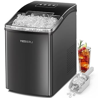 - ❄️【Convenient Design】YESERLI ice machine come with a 3.5lbs detachable basket and ice scoop,it’s very convenient for you to remove the nugget ice.Featuring a 3.2L large water tank,so you don’t need to add water frequently.The 14”L dual waterway hose on back of the ice maker could drain the water quickly.