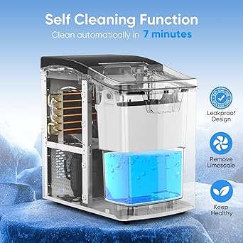 - ❄️【5min Self Cleaning】YESERLI countertop ice maker provides the self-cleaning function to prevent limescale and odors,we recommend a weekly cleaning to ensure your machine’s longevity.It will run a 5 mins self-cleaning by simple press the “Clean” button,adding citric acid powder could cutting down mineral build-up to avoid abnormal sound.Spend more time enjoying the ice making and less time worrying about maintenance.