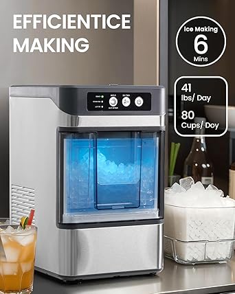 - FAST ICE MAKER: The KeyEnergy ice maker is engineered for speed, producing 4.5 ounces of ice in just 6 minutes, ensuring you never run out during gatherings or busy kitchen moments. Simply fill the 1.3L water tank, and this efficient machine can generate up to 41pounds of ice within 24 hours, making it ideal for parties, family use, or keeping beverages perfectly chilled throughout the day.