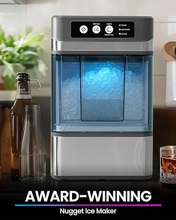 - PERFECTLY DESIGN NUGGET ICE MAKER: Elegantly designed with a large, high-visibility window, this pellet ice maker countertop model measures just 11.6 x 9.6 x 13.3 inches. It seamlessly fits on kitchen countertops, islands, or tables, making it an exquisite choice for daily use, meal prep, or entertaining guests without encroaching on valuable space