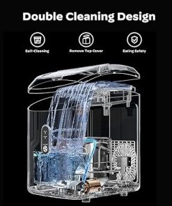 - Self Cleaning Function – The countertop ice maker has a removable cover that makes it easy to reach every nook and cranny for deep cleaning. The ice maker also features an automatic self-cleaning cycle that can be activated by pressing and holding the ICE/CLEAN button for 5 seconds