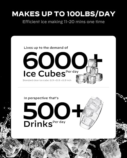 - GIGANTIC ICE QUANTITY! –Silonn commercial ice maker can produce ice in just 8-15 minutes. With a creating power of 90-100lbs ice daily, that’s a professional-sized punching bag. The high production rate ice maker will produce new ice faster, well enough for you to keep up the supply levels during busy times, this freestanding ice maker machine can easily sustain the house, kids, and outdoor parties. Saving you money and time.