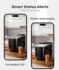 - ✔Control Using the Silonn App: Take full command of your smart countertop ice maker using the Silonn mobile app. Connect and monitor your ice maker to start or stop ice production, adjust ice cube size, and receive notifications when the water needs to be refilled.