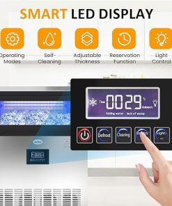 - Smart LED Display: Effortlessly control functions with a sleek LED display. Enjoy one-touch automatic cleaning, set 24-hour reservations, and adjust ice cube thickness with just a few taps. Plus, receive alerts for full ice bins and low water levels.