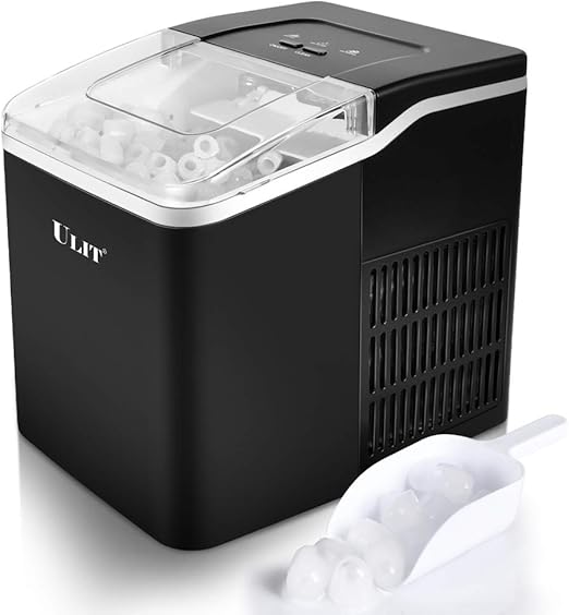 - <b> Powerful Ice Maker</b>: ULIT countertop ice maker <br/> machine is equipped with the most powerful compressor, fast cooling effect <br/> and quiet. This mini ice maker Measures just 12.6×8.82×11.69 inches. Large <br/> Capacity Based on Small Footprint, Small Enough to fit on most countertop <br/> and easy to store when not in use. It takes up less space at home or in the office, barbeques, outdoor parties, or basement bars.