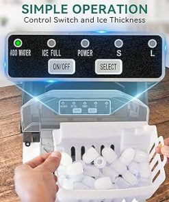 - PUSHBUTTON CONTROL & EASY TO USE – Features a simple control panel so you just have to add water, and select the ice size(S and L are options), and the process will begin. When there is not enough water or when the ice bucket is full, the indicator will light up, reminding you to add more water or remove the extra ice cubes. Thickened foam layer provides a good insulation effect, allowing ice to not melt for 5-8 hours at room temperature.